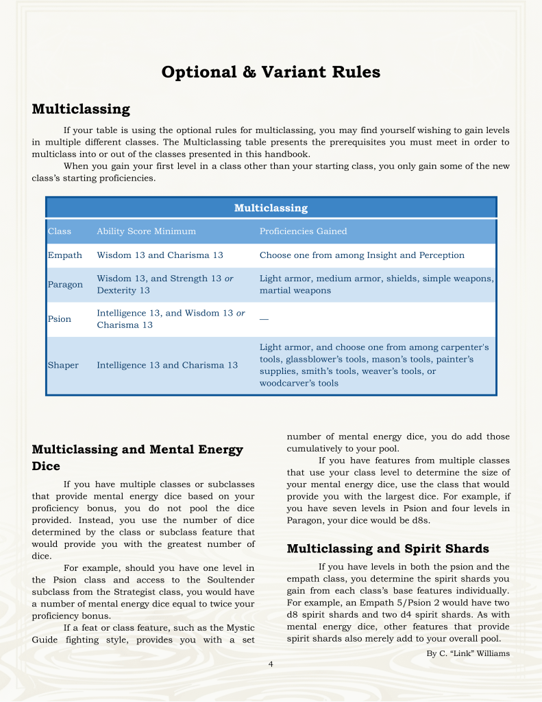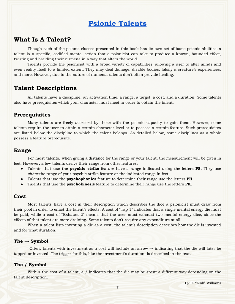 Still to come: Posts highlighting the other three classes, and a post containing all of the psionic talents you see listed here! I look forward to hearing from you.